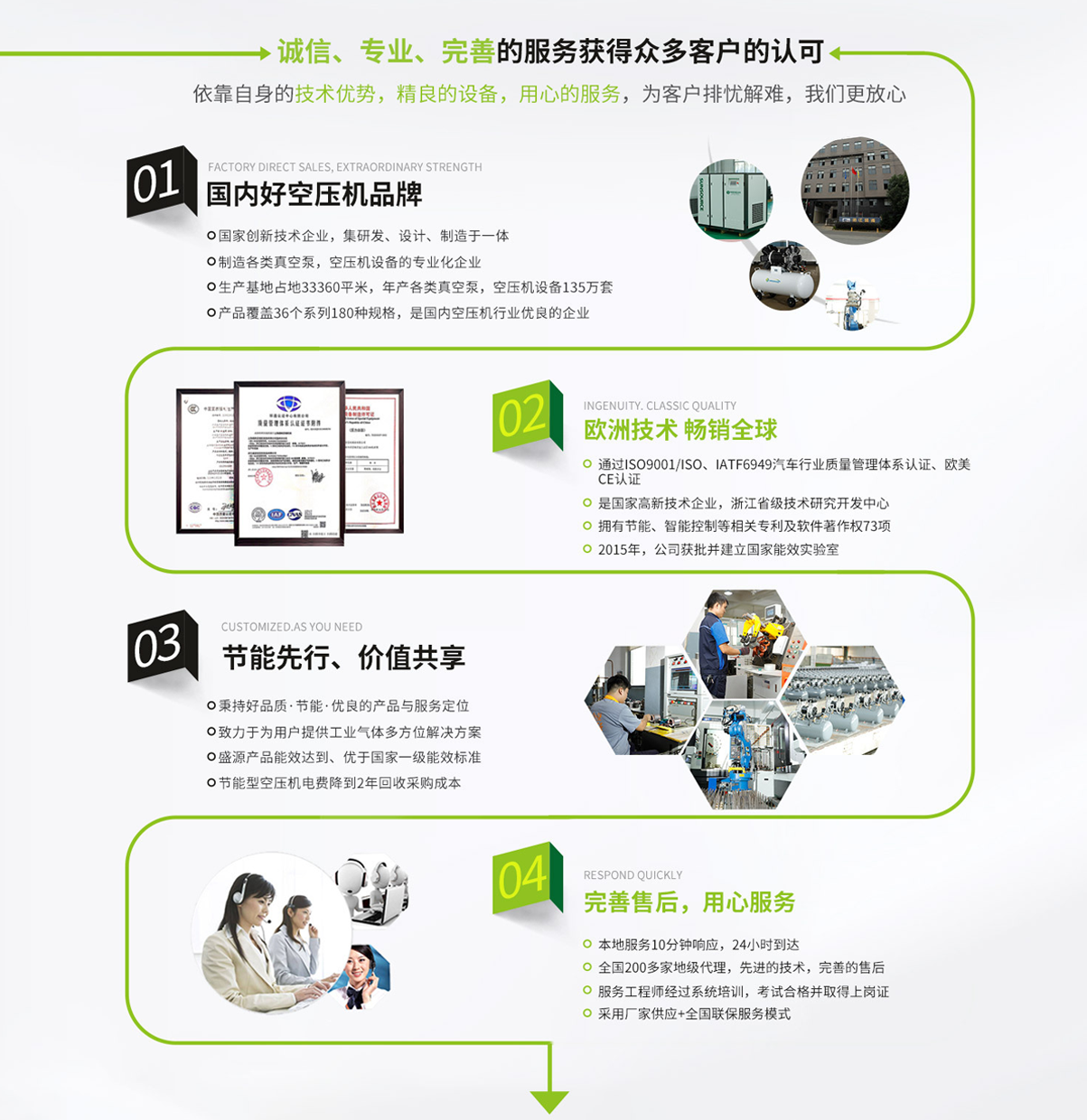 浙江盛源空壓機(jī)制造有限公司是一家研究制造無油真空泵系列、新能源電動(dòng)空壓機(jī)、空氣壓縮機(jī)設(shè)備、器材、永磁伺服電機(jī)、工業(yè)投資等多元化經(jīng)營的大型企業(yè),是國家高新技術(shù)企業(yè),浙江省級(jí)技術(shù)研究開發(fā)中心。